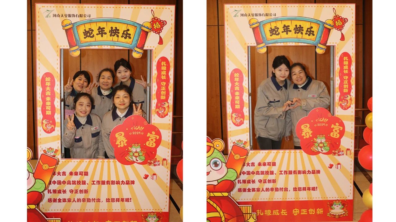2025年元月23日上午,河南天曼服飾400多名員工歡聚一堂,歡快喜慶的年會(huì)現(xiàn)場(chǎng)張燈結(jié)彩,處處洋溢著天曼人的歡歌笑語(yǔ),喜慶的吉祥門(mén)前大家紛紛拍照合影,相互祝福、相互問(wèn)候,交流著一年的收獲喜悅。