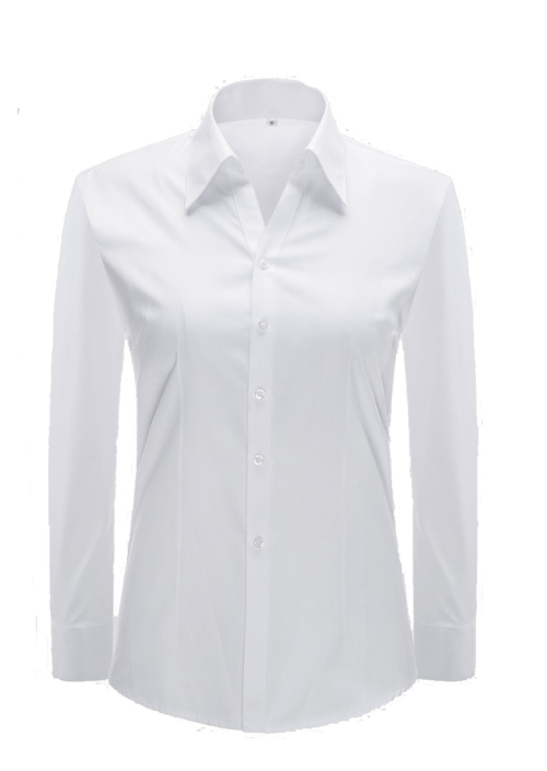 品名:女長袖V領襯衣;版型:修身版 ;貨號:YW4506;面料:Y4506;顏色:白色明斜紋 ;Fabric:C45/T55/
