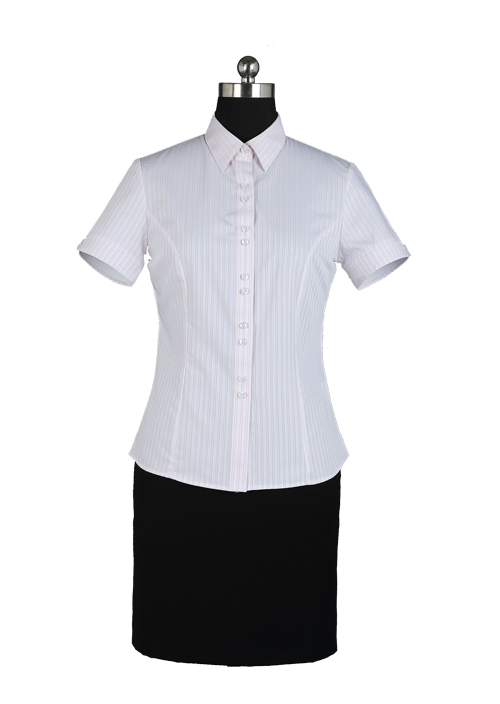 • 產品簡介:女士粉條紋襯衫批發定做TMNC502A