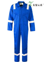面料:100% 純棉,防靜電,防油,防水,20*16,120*60,240 GSM;前胸繡花標志,前門襟樹脂拉鏈,兩個帶蓋胸兜和兩個斜插褲兜,后背臀部貼兜,腰部松緊帶,兩條5CM 反光條環繞衣前后,雙臂和雙褲腿。[查看]