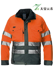 布料:100% 棉,16*12,108*56,260-270 GSM, 兩條3CM反光條環繞胸部一周,雙臂及雙腿部,兩個帶蓋胸兜,兩個斜插兜,腰部松緊帶,后背臀部貼兜, 前門襟塑脂拉鏈。[查看]